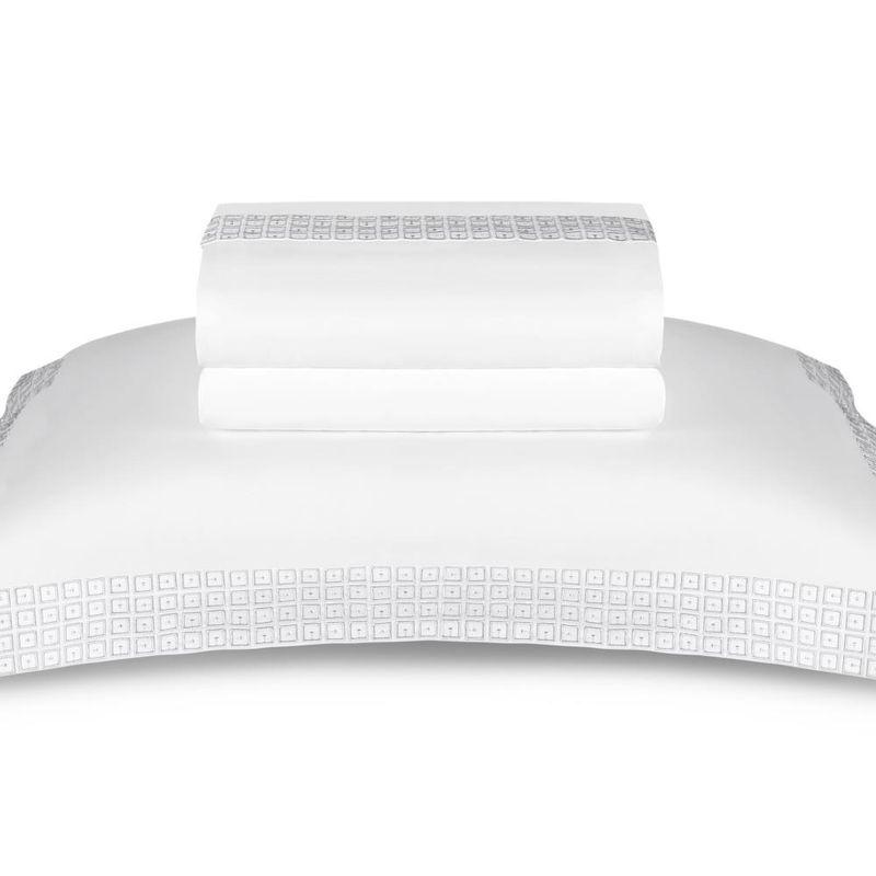 O jogo de cama the 325 kent impressiona com seu design marcante um bordado sofisticado, seu padrão geométrico representa a modularidade que é uma característica do estilo contemporâneo e traz modernidade e movimente.