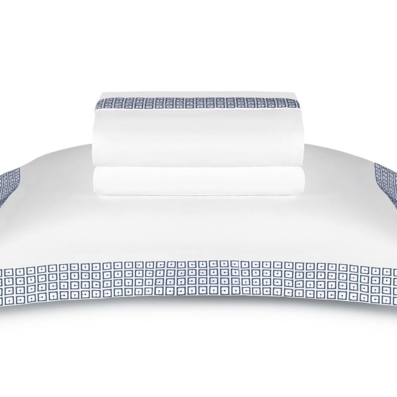 O jogo de cama the 325 kent impressiona com seu design marcante um bordado sofisticado, seu padrão geométrico representa a modularidade que é uma característica do estilo contemporâneo e traz modernidade e movimente.