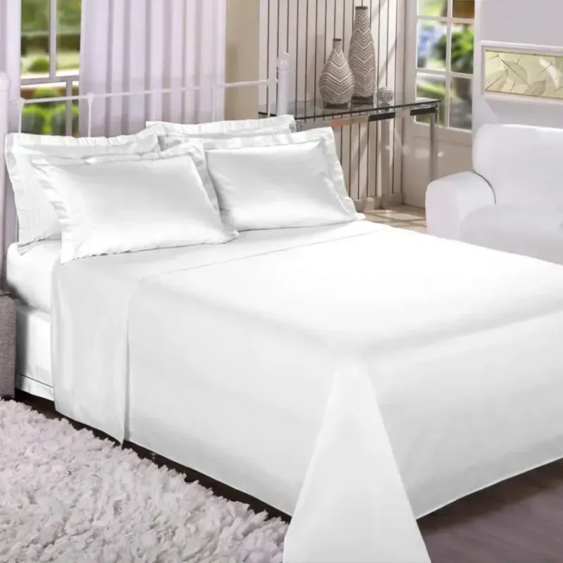 O Jogo de Cama King Trésor 200 fios branco, da Estamparia, combina conforto e elegância para transformar seu quarto. Confeccionado em algodão de alta qualidade, o conjunto inclui lençol superior com dobra feita, lençol com elástico que garante encaixe perfeito no colchão e fronhas com abas para um acabamento sofisticado. Ideal para quem valoriza suavidade, durabilidade e um visual clássico no enxoval.
