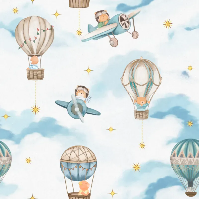 Papel de Parede Bambine Ursinho Aviador Azul BA0010
