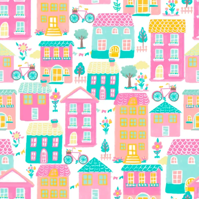 Papel de Parede Bambine Vila Multicolor Rosa BA0021