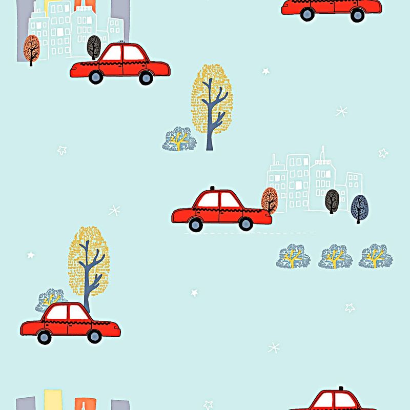 Papel de Parede Infantil Carros Azul Claro/Vermelho Fofura Baby FF4009- Rolo Fechado com 0,53cm x 10mts
