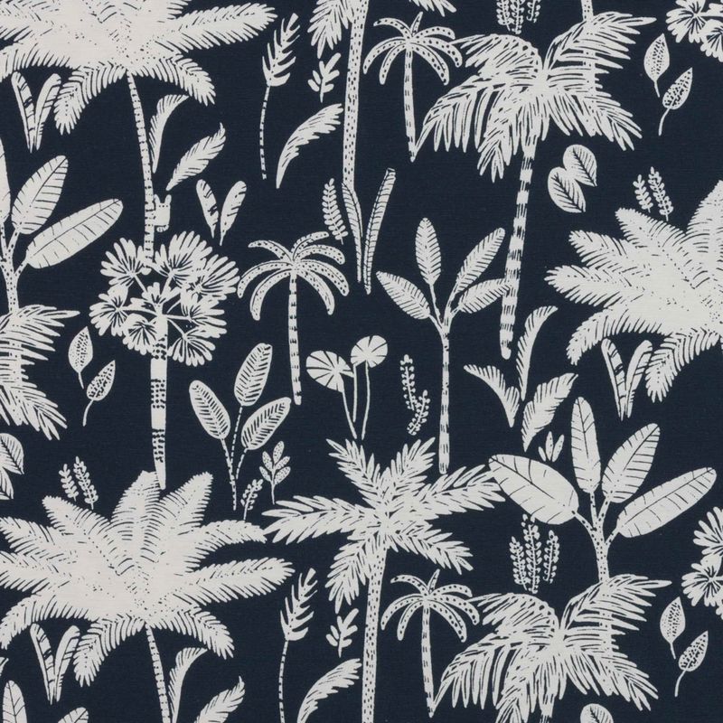 Tecido Para Sofá e Estofado Área Externa Acqua Summer 504 Coqueiro Cru e Azul Marinho - Largura 1,40m