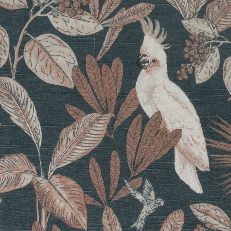 Tecidos para sofáImpermeabilizadoTecido Para Sofá e Estofado Impermeabilizado Cancun 105 Algodão Flamê Folha Pássaro Azul - Largura 1,40m